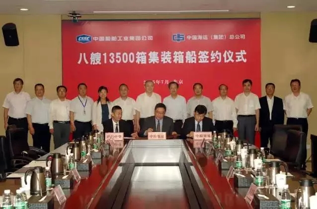 据悉7月29日,沪东中华与中海集运在京签署8艘13500TEU集装箱船新造船合同。中船集团董事长董强、副总经理南大庆,中海集团董事长许立荣、副总经理丁农等出席签约仪式并见证签约。